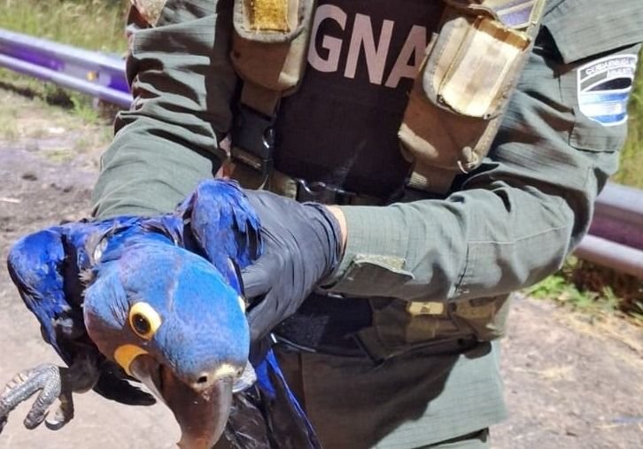En la madrugada de este miércoles, rescataron a dos ejemplares de guacamayo azul en un puesto de control vehicular sobre la Ruta Nacional 11, a la altura de la ciudad chaqueña de Lapachito.