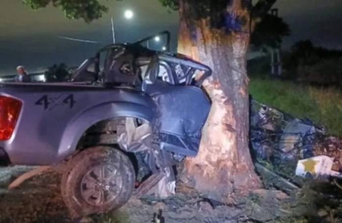 Ocurrió minutos antes de la 1 de la madrugada, a la altura del kilómetro 798 de la Ruta Nacional N°12, cerca de Goya, donde una camioneta pick up Nissan Frontier 4×4 al mando de un hombre de 35 años de apellido Balestra, acompañado de un peón llamado Juan Araujo, se despistó y terminó impactando violentamente contra un árbol a la vera de la ruta.