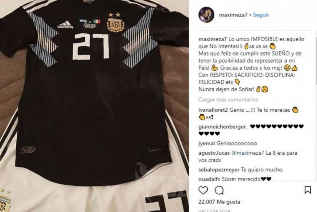 El correntino Maxi Meza, convocado a la Selección Argentina de fútbol para jugar en el Mundial de Rusia 2018, utilizó su cuenta de la red social Instagram para agradecer los miles de mensajes, luego de que el DT del combinado nacional, lo incluyera en la lista definitiva.