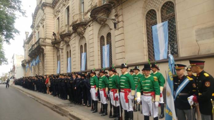 El acto se realizó sobre calle Quintana, frente al histórico edificio de la Jefatura de Policía y se inició pasadas las 10 luego de la recepción de autoridades en el despacho del Jefe Félix Ricardo Barboza.