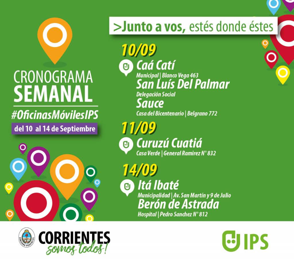 Cabe resaltar que el IPS realiza asesoramiento además de casa central en la ciudad de Corrientes, en oficinas fijas del interior y en más de 35 Oficinas Móviles que tiene la Institución las que recorren permanentemente distintas localidades de la provincia.