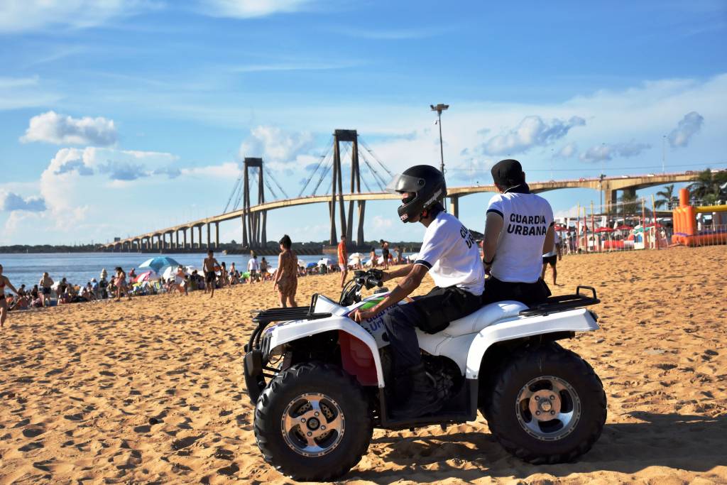 En el marco de ofrecer más y mejores servicios a los vecinos y turistas, la Municipalidad de Corrientes incorporó dos cuatriciclos de la Guardia Urbana Municipal (GUM) que custodiarán a lo largo y ancho la playa Arazaty, lo cual se agrega a los guardavidas, duchas, baños públicos, espacios limpios y bebederos en la Costanera, como así también a la disposición de estands de información turística.