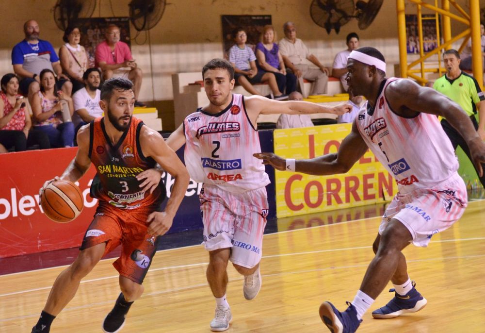 Dentro de un contexto equilibrado, Quilmes sacó una pequeña ventaja en el primer tiempo (37 a 34) gracias a su efectividad en los tiros de tres puntos: 6 conversiones de 13 intentos, contra 2 de 11. En los diez minutos iniciales, San Martín logró controlar la ofensiva visitante, mientras que en el ataque encontró el gol a través de Lee Roberts y Matías Solanas.