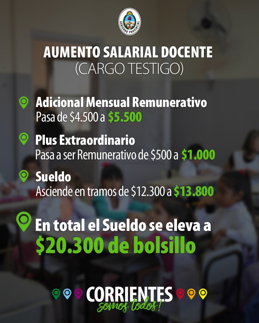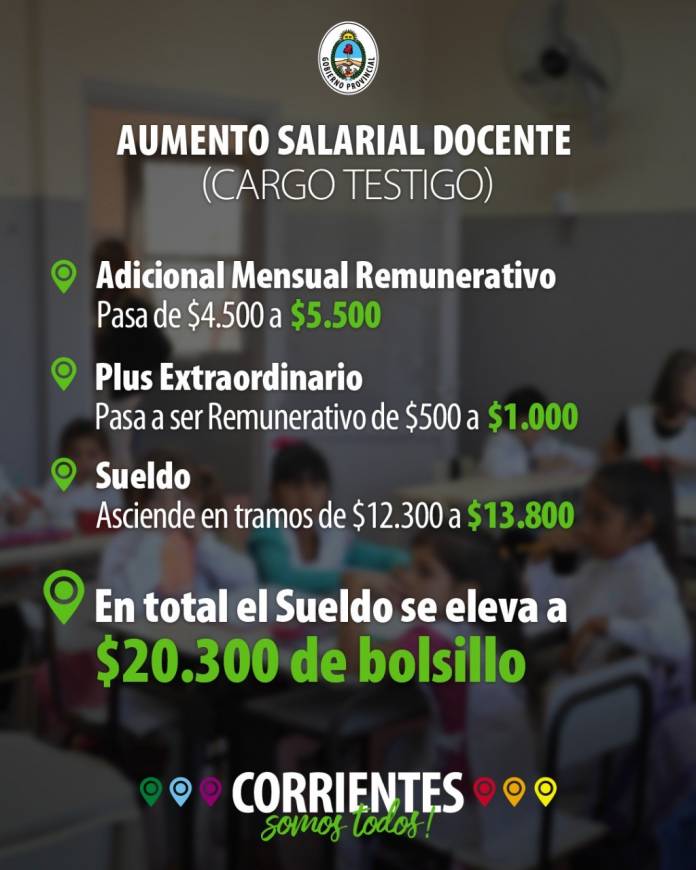 Resulta oportuno destacar que más allá del acuerdo alcanzado con el sector docente, que garantiza el normal inicio de las clases en la provincia, es que el salario del sector que tiene su particularidad, como lo es la prestación del servicio, comparte adicionales similares con el resto de la administración pública. Es así que el sueldo del sector que se incrementó en esta primera etapa que arranca en el mes de marzo de 12.300 a 13.800, también recibe los llamados plus, que se vienen sosteniendo merced a un gran esfuerzo del Gobierno de la Provincia, y que ahora a partir de marzo para reforzar el ingreso del sector, se elevó el de 4500 a 5500, y el de 500 pesos a 1000, convirtiéndose este último también en remunerativo, lo que significa que aporta al sistema previsional y de obra social, es decir que ambos emolumentos forman parte del salario de los docentes, de esta manera a partir de estas correcciones, el que inicia sus actividades como docente percibirá 20.300 pesos de ingresos, sin antigüedad y salario familiar. Reiterando que aquellos con varios años en el desempeño laboral, tendrán un despegue más importante en sus sueldos.