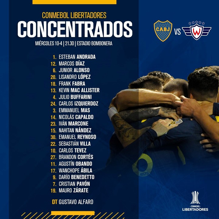 Luego del duro 3-0 en contra ante el Atlético Paranaense en Curitiba y de haber terminado tercero en la Superliga, Boca volverá a jugar en la Bombonera cuando reciba a Jorge Wilstermann hoy desde las 21.30. Por eso, Gustavo Alfaro dio la lista de concentrados para su cuarto partido del Grupo G de la Copa Libertadores e incluyó a Wanchope Ábila. El delantero, vale recordar, había sufrido una ruptura fibrilar en su aductor derecho hace diez días.